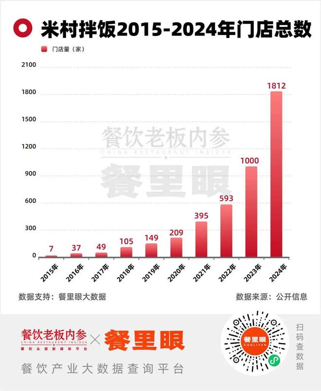 2024年,米村拌饭继续“闪电速度”扩张,目前已经在全国超过1800家店,而且,属于直营开店。不得不说,餐饮业最黯淡的几年,正是米村拌饭最凶猛的时段。