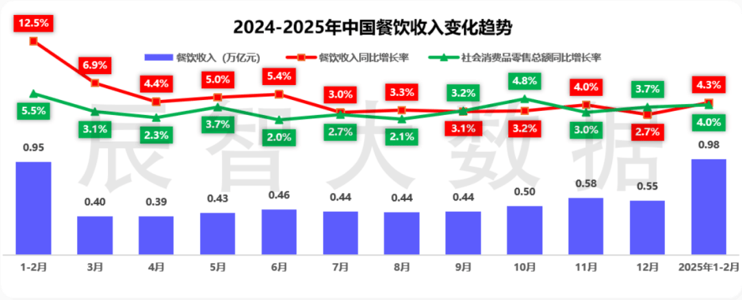 据国家统计局最新数据显示,2025年上半年,全国餐饮收入27480亿元,同比增长4.3%;限额以上单位餐饮收入7996亿元,同比增长3.6%。