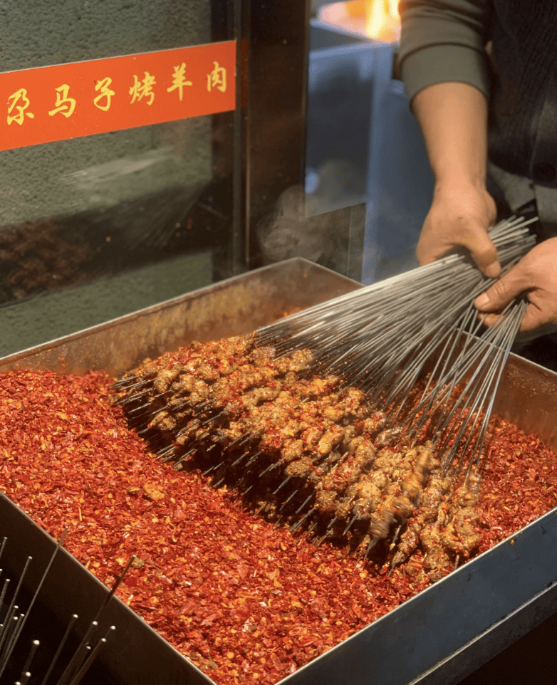 据数据显示,西北区域的烤串门店数呈现出较快的增长势头,同比增长达11.5%,位居全国第一。西北烧烤以牛羊肉为主,搭配红葱、辣椒、香茅草等特色调料,口味重、分量足,体现西北人的豪爽性格。如陕西的烤羊肉串注重羊肉与脂肪的搭配,甘肃的羊肉串使用手工碾制的辣椒面,保留粗粝口感,青海的烤羊肠、烤羊肚等特色菜品也独具风味。同时,新疆的红柳木穿肉、馕坑炉,甘肃的明火烧烤等器具和烹饪方式,赋予了烧烤独特的烟熏香气和风味。
