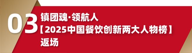 【2025中国餐饮创新两大人物榜】是餐饮老板内参首度重磅推出的榜单,其中【2025中国餐饮创新年度人物】将继续寻找和揭秘2025年度行业内具有唯一性的“领袖人物”,他/她,是餐饮行业的年度影响力领头军、是行业轰动事件的幕后掌舵人。