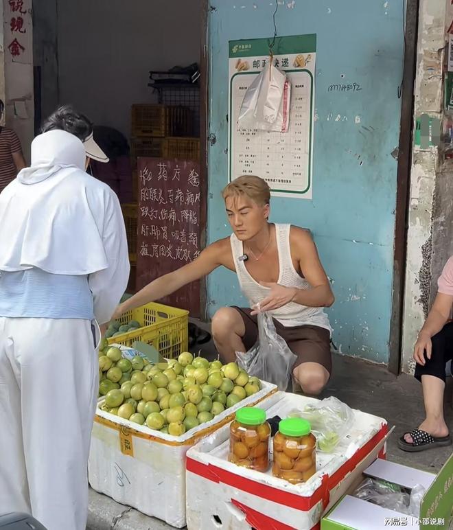 吃得差不多饱了,吴克群又路过一个水果摊,看见摊主是一位老婆婆,便主动上前帮忙卖水果,完全没有一点明星架势!