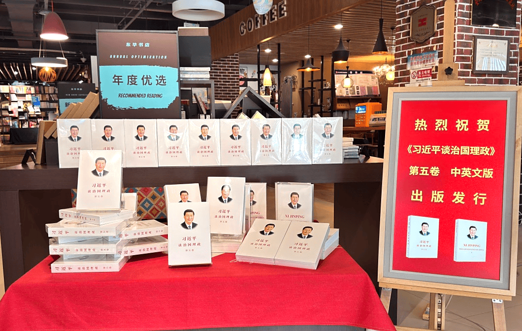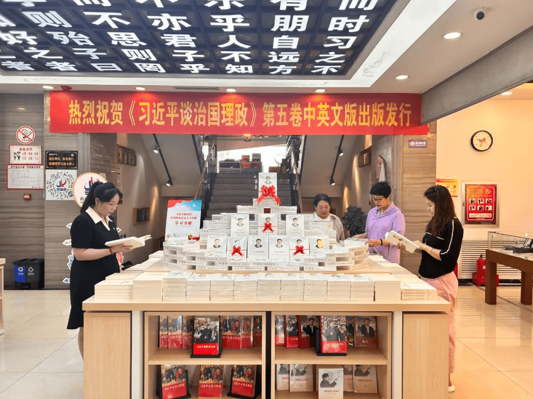 7月30日,中央宣传部(国务院新闻办公室)会同中央党史和文献研究院、中国外文局编辑的《习谈治国理政》第五卷,由外文出版社以中英文版出版,面向海内外发行。全国各地新华书店迅速行动,从召开专班会议到线上线下联动,从门店中心区域的主题展台到做好政企单位的网格化推广,以高质量服务保障图书供应,全力满足全国各地广大党员干部群众的学习用书需求,助力全国掀起《习谈治国理政》第五卷学习热潮。